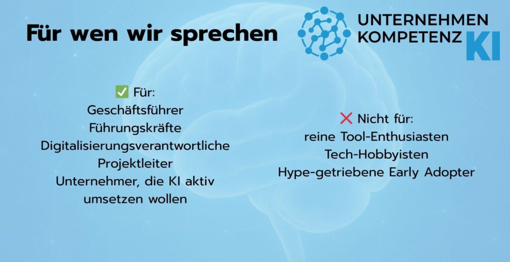 Unternehmen Kompetenz KI ist kein Tool-Club. Kein Trend-Kanal. Keine KI-Spielwiese. Wir sind ein strategischer Raum für Entscheider, die KI als unternehmerische Verantwortung verstehen.